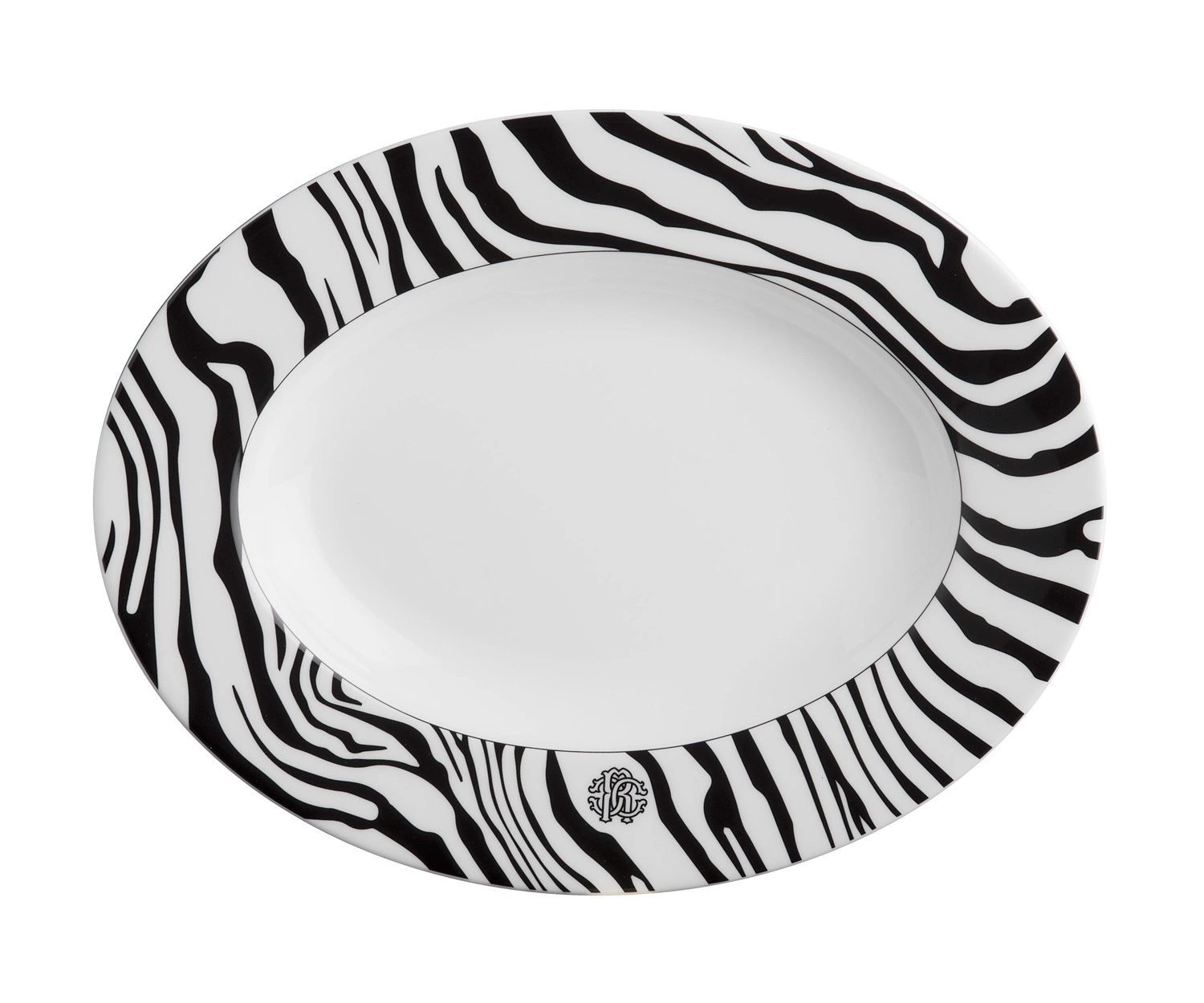 - Półmisek 23 cm z kolekcji Zebrage od marki Roberto Cavalli. Zwierzęcy motyw w czarno-białe pasy. Ozdobiony małym monogramem projektanta. Wykonany z najwyższej jakości porcelany kostnej. Możliwość mycia w zmywarce.