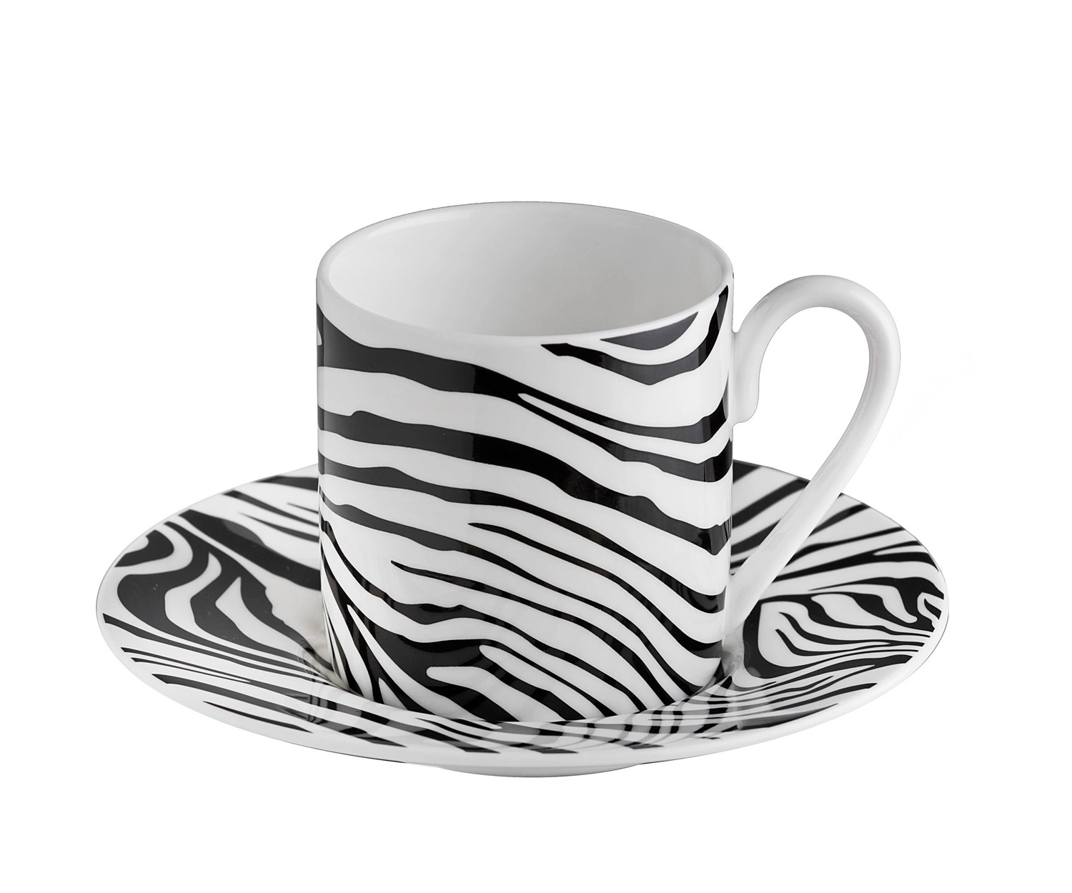 - Filiżanki do kawy z kolekcji Zebrage od marki Roberto Cavalli. Zwierzęcy motyw w czarno-białe pasy. Wykonane z najwyższej jakości porcelany kostnej. Zestaw 6 sztuk. Możliwość mycia w zmywarce.