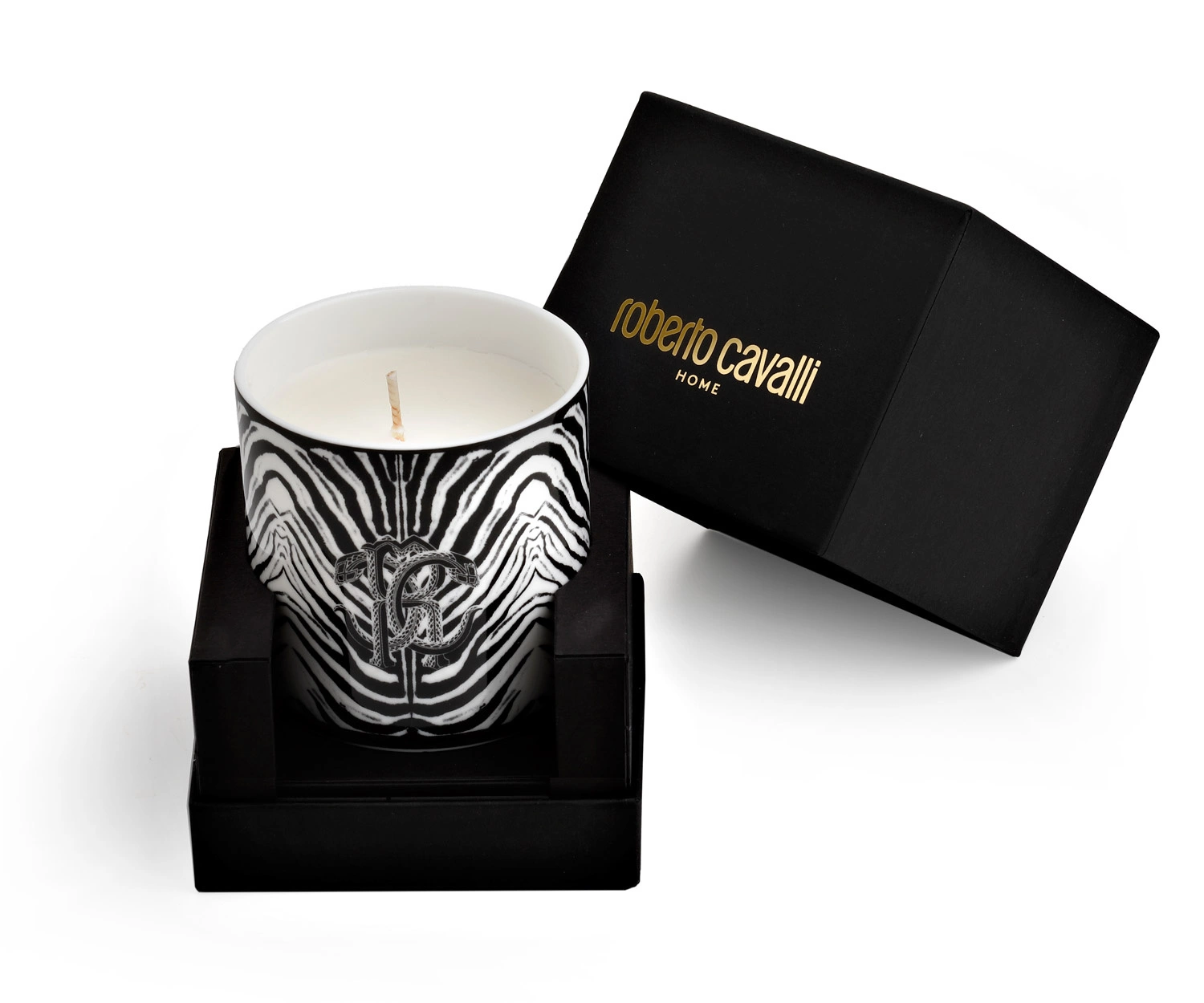 • Zapachowa świeca Black Zebra marki Roberto Cavalli. Wosk umieszczony w luksusowym pojemniku z porcelany kostnej z monogramem. Zapach drzewno-orientalny. Zapakowana w eleganckie pudełko prezentowe.