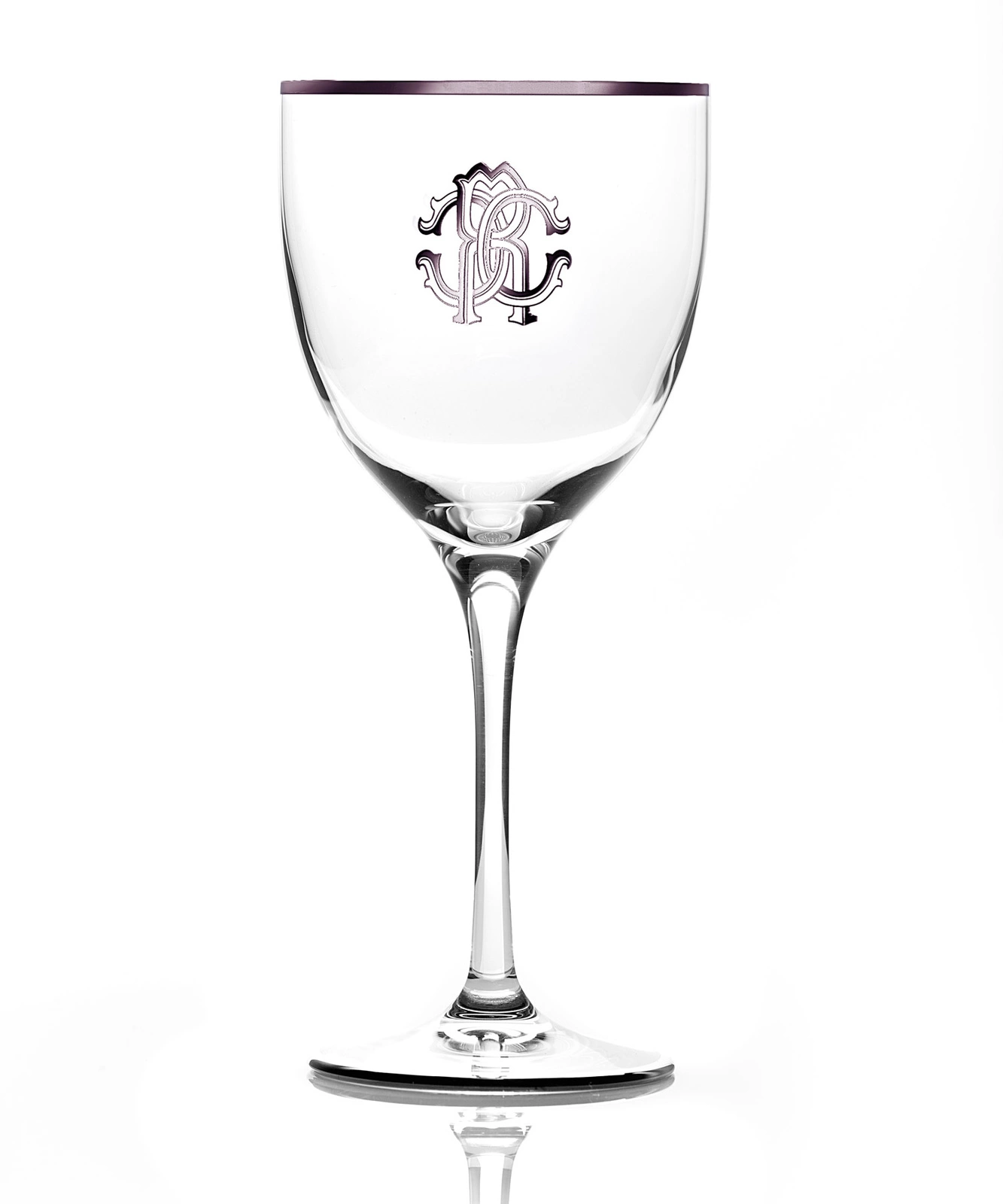 - Kryształowe kieliszki do wody marki Roberto Cavalli. Kolekcja Monogramma Platin. Ozdobione niewielkim monogramem oraz ręcznie malowanym, platynowym zdobieniem. Zestaw 6 sztuk.