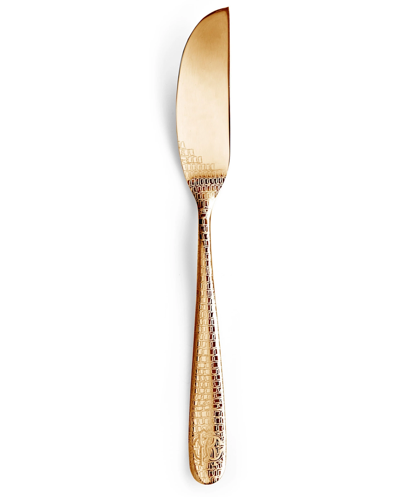 - Zestaw 6 noży do ryb z kolekcji Lizzard Gold od marki Roberto Cavalli. Rękojeść ozdobiona motywem przypominającym skórę jaszczurki. Wykonane ze stali nierdzewnej PVD w kolorze złotym.