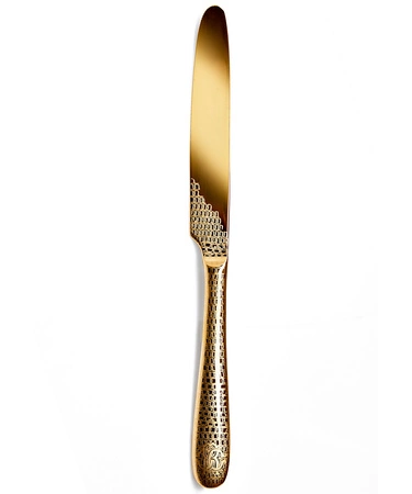 - Zestaw 6 noży deserowych z kolekcji Lizzard Gold od marki Roberto Cavalli. Rękojeść ozdobiona motywem przypominającym skórę jaszczurki. Wykonane ze stali nierdzewnej pokrytej warstwą 24-karatowego złota o grubości 0,5 μm.