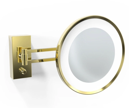 • Naścienne, okrągłe lusterko kosmetyczne CORNER BS 36 od marki Decor Walther. Wyposażone w oświetlenie LED. Wykonane z mosiądzu pokrytego 24 karatowym złotem. Posiada ramię, którym można regulować odległość, podstawa prostokątna.