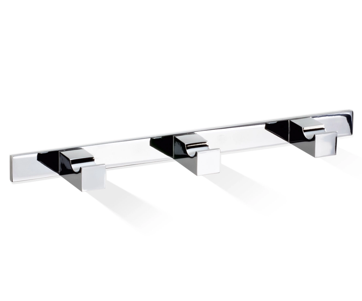 Wieszak na ręczniki z trzema haczykami CO HAK 3 marki Decor Walther. Masywny o prostokątnych kształtach. Wykonany z stali nierdzewnej pokrytej chromem.