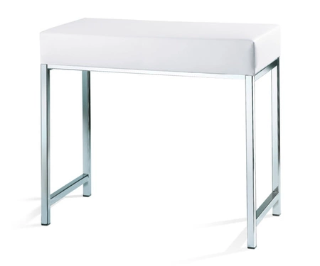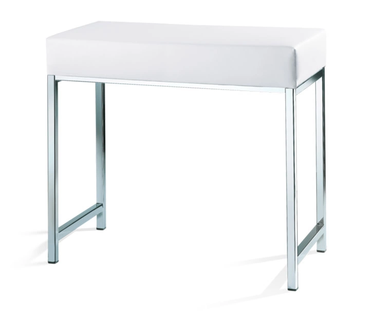 Ławka łazienkowa DW 66 marki Decor Walther. Siedzisko wykonane z białej ekoskóry, stelaż mosiężny, chromowany. Można łączyć z kolekcją CLASSIC.