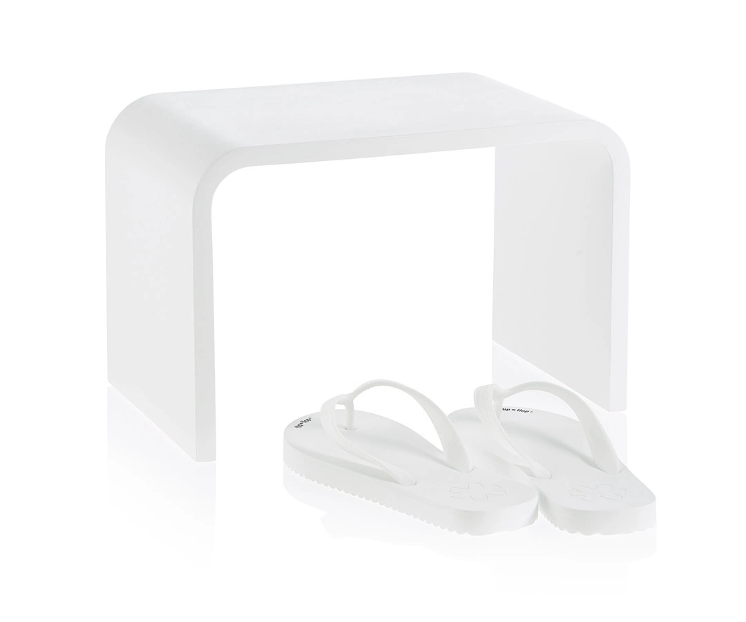 - Minimalistyczny, niski stołek pod nogi STONE SCH marki Decor Walther. Wykonany z kompozytu w kolorze białym. Idealny do łazienki, odporny na wilgoć, chemikalia i zarysowania.