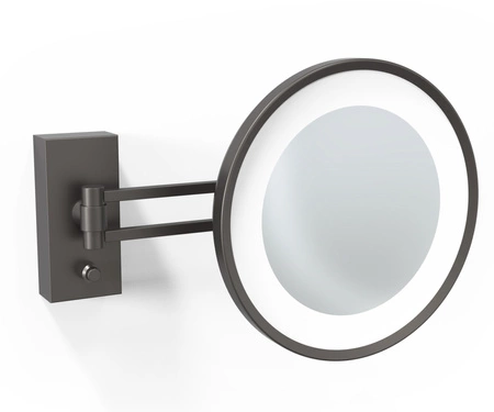 • Naścienne, okrągłe lusterko kosmetyczne CORNER BS 36 od marki Decor Walther. Wyposażone w oświetlenie LED. Wykonane z mosiądzu w kolorze ciemnego metalu. Posiada ramię, którym można regulować odległość, podstawa prostokątna.