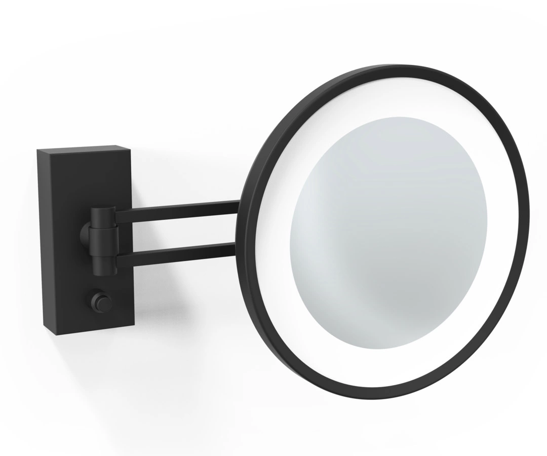 • Naścienne, okrągłe lusterko kosmetyczne CORNER BS 36 od marki Decor Walther. Wyposażone w oświetlenie LED. Wykonane z mosiądzu lakierowanego na czarny mat. Posiada ramię, którym można regulować odległość, podstawa prostokątna.