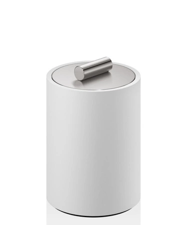 - Pojemnik z przykrywką STONE DMD S marki Decor Walter. Wykonany z białego kompozytu, o okrągłym przekroju. Przykrywka z uchwytem w kolorze matowej stali. Idealny na drobne akcesoria łazienkowe.
