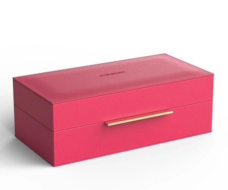 Eleganckie pudełko z przykrywką BROWNIE BOX S marki Decor Walther. Prostokątny kształt z mosiężnym uchwytem. Produkt wykonany z najwyższej jakości sztucznej skóry w odcieniu różowym z subtelnymi przeszyciami. Idealny do przechowywania akcesoriów.