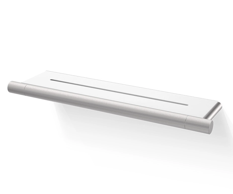 - Półka pod prysznic montowana do ściany BAR DA marki Decor Walther. Prostokątna nakładka wykonana z kompozytu ze szczeliną na ociekanie w kolorze białym. Rama wykonana z stali nierdzewnej w matowym wykończeniu.