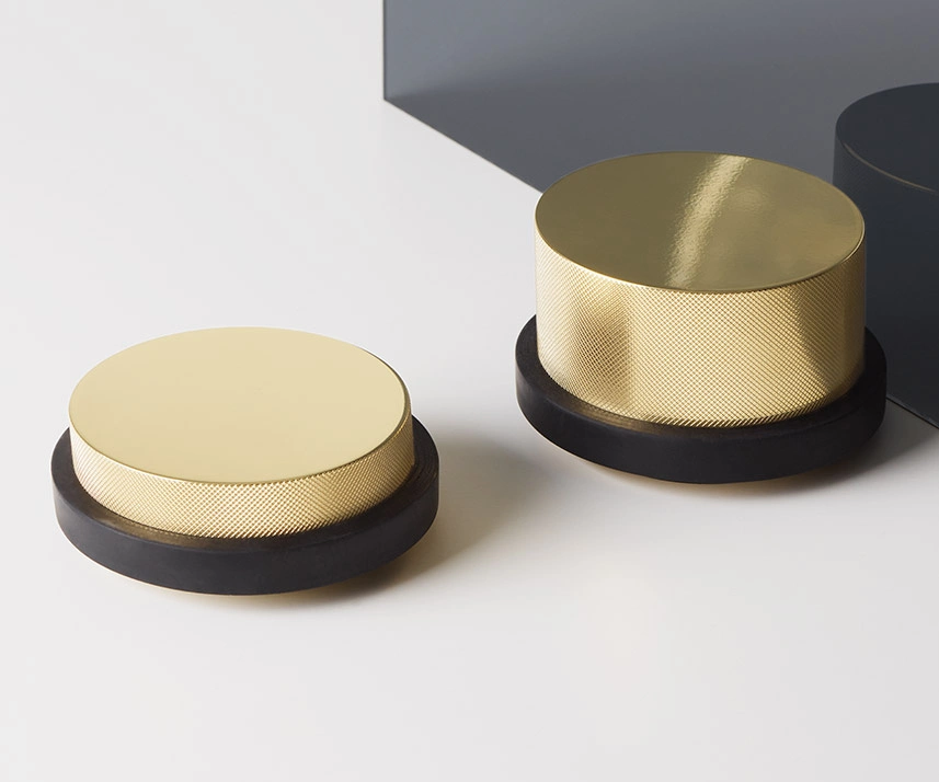 - Okrągły odbojnik do drzwi CLUB DOORMAN L marki Decor Walther. Wykonany z wytrzymałego mosiądzu pokrytego 24-karatowym złotem. Kształt wysokiego, ozdobnego walca z gumowym wykończeniem na dole. Waga: 2 kg.