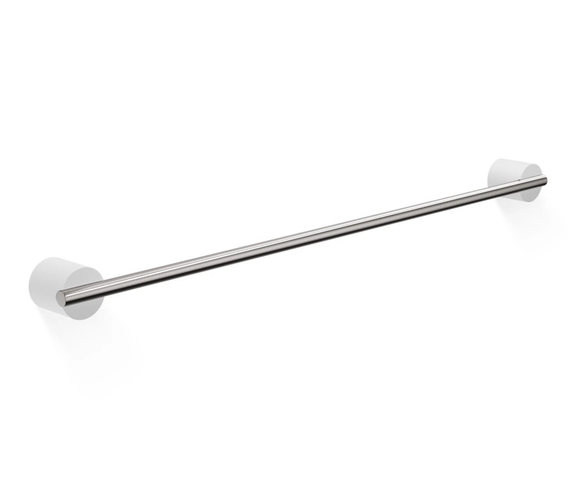 - Wieszak na ręcznik z kolekcji Stone HTE marki Decor Walther. Reling wykonany ze stali nierdzewnej w matowym wykończeniu, przymocowany na końcach do walcowatych podstaw wykonanych z białego kompozytu. W kilku rozmiarach.