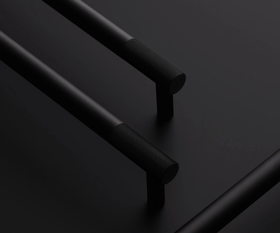 • Wieszak na ręcznik w formie relingu o kilku długościach CLUB HTE marki Decor Walther. Wykonany z mosiądzu lakierowanego na czarny mat, na końcach elegancka perforacja charakterystyczna dla kolekcji.
