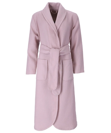 • Szlafrok damski z szalem CATANIA 327 w kolorze lawendowym. Wykonany z najwyższej jakości 100% bawełny, tkanina gofrowana. Wiązany w tali. Dwie kieszenie, kołnierz, pas oraz ozdobna lamówka wykonane z gładkiej tkaniny dodają niepowtarzalnego uroku.