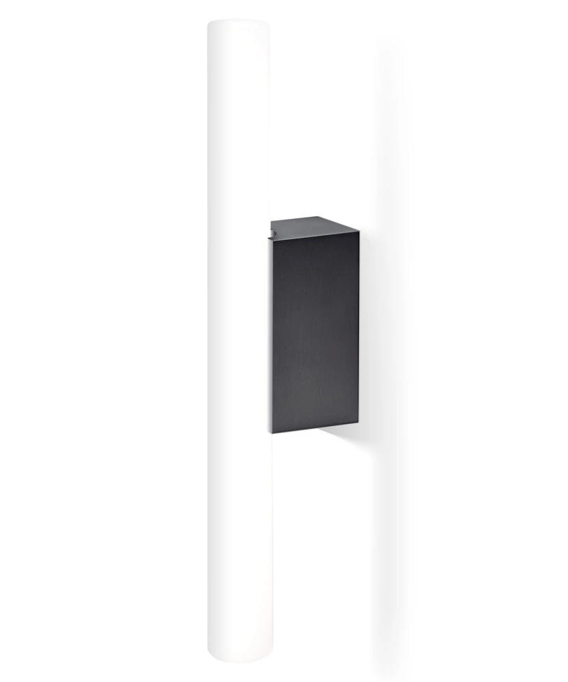 Lampa ścienna, podłużny kinkiet OMEGA 2 LED marki Decor Walther. Podstawa wykonana z mosiądzu lakierowanego na czarno w wykończeniu matowym. Żarówka rurowa LED nie jest dołączona do zestawu. Montaż pionowy lub poziomy.