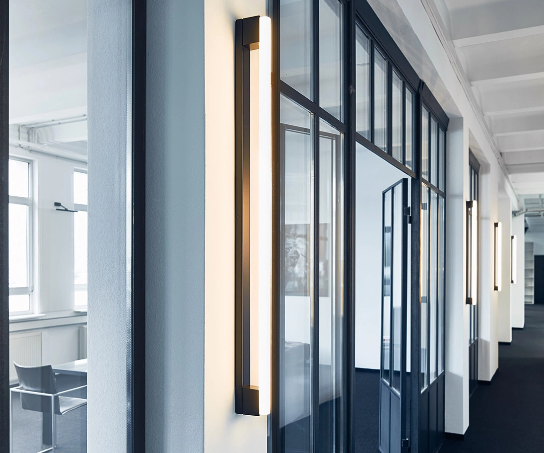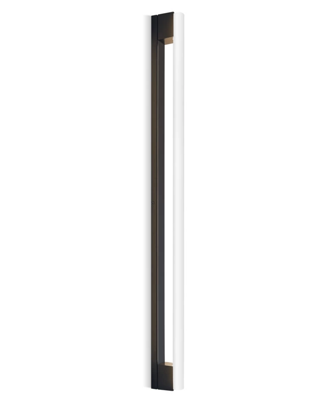 - Lampa ścienna, podłużny kinkiet OMEGA 200 LED marki Decor Walther. Dwie podstawy wykonane z mosiądzu lakierowanego na kolor czarny w wykończeniu matowym. Żarówka rurowa LED nie jest dołączona do zestawu. Montaż pionowy lub poziomy.