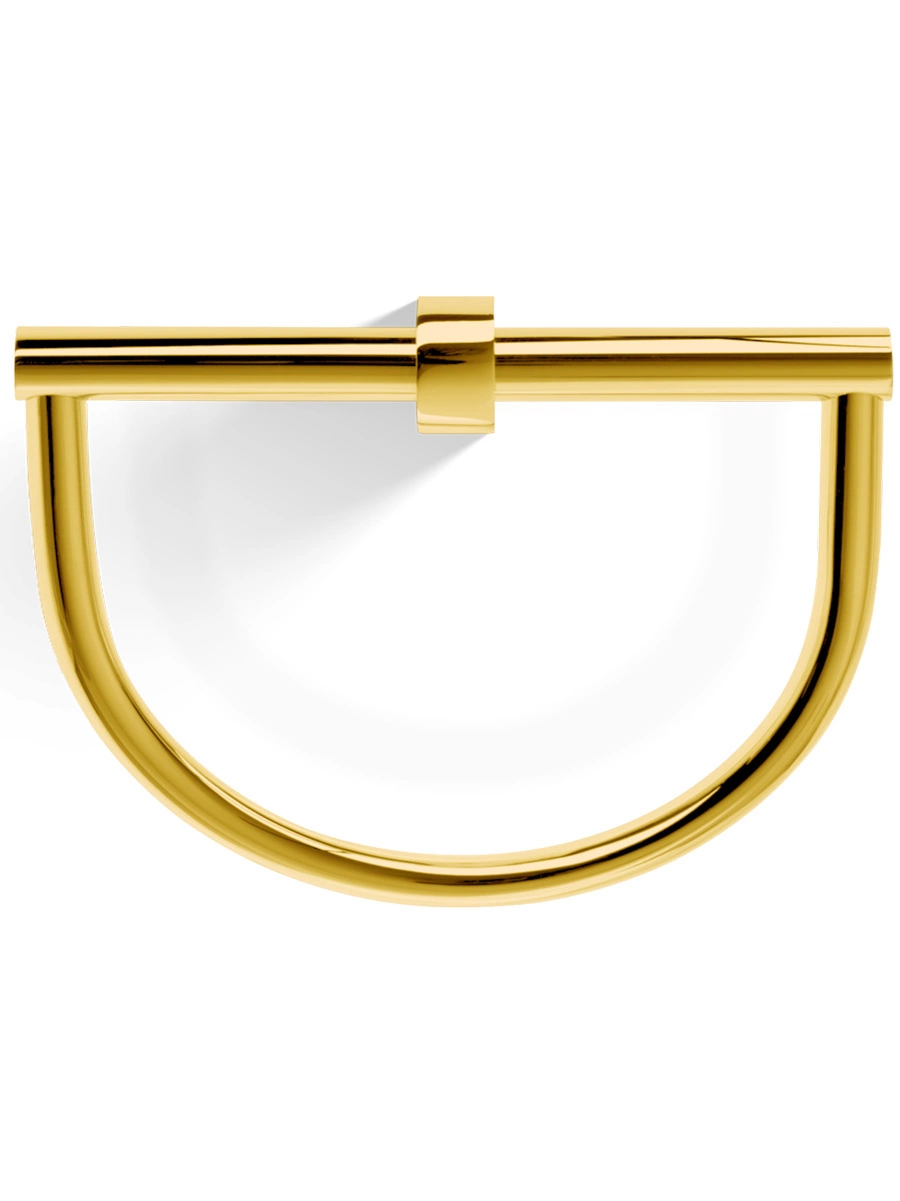 • Wieszak na ręcznik w formie zamkniętego półokręgu. Wykonany z mosiądzu pokrytego złotem.