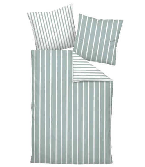 - Dwustronna pościel w pasy Modern Classic 39028-46. Przód w kolorze przydymionej zieleni z białymi pasami, tył biały, z cieńszymi zielonymi paseczkami. Wykonana z satyny bawełnianej ze 100% bawełny mako. Dzięki merceryzacji pościel zachwyca połyskiem.