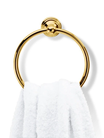 • Wieszak na ręcznik w kształcie ringu. Wykonany z mosiądzu pokrytego złotem.