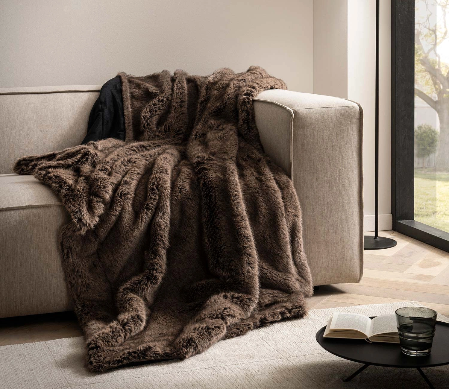 - Ekskluzywny, dwustronny koc futrzany marki bugatti w ciepłym brązowym odcieniu. Wyjątkowo miękki włos, tył koca gładki, z tkaniny przypominającej zamsz w kolorze czarnym. Wyjątkowo wytrzymały i nadający się do prania w niskich temperaturach.