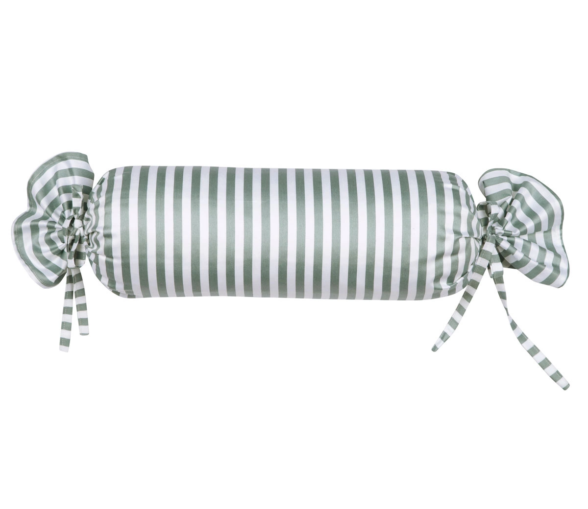 Poszewka na wałek Modern Classic 3910-46 marki Janine. Kolor przydymionej zieleni w białe paski. Zawiązywana za pomocą troczków. Wykonana z satyny bawełnianej ze 100% bawełny mako. Dzięki procesowi merceryzacji poszewka zachwyca subtelnym połyskiem.