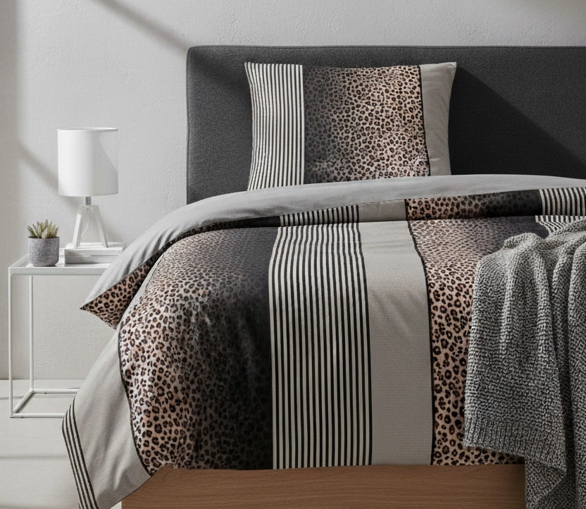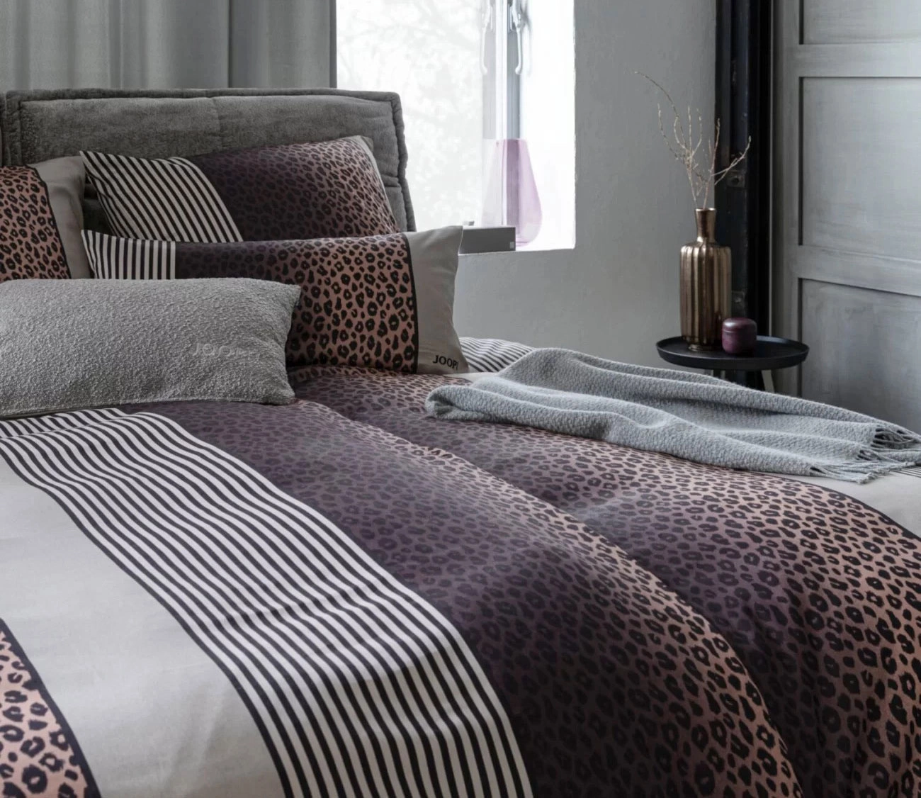 - Pościel Leo 4112-7 marki JOOP!. Piękny, zwierzęcy motyw w odcieniach ciemnego beżu, czekolady z pasami w kolorze ciepłego popielu. Wykonana z satyny bawełnianej, idealnie gładkiej i jedwabistej, z delikatnym połyskiem. Pościel łatwa do prasowania.