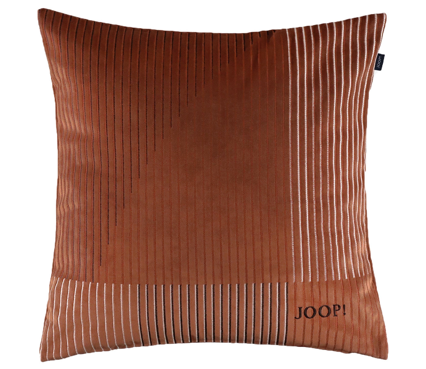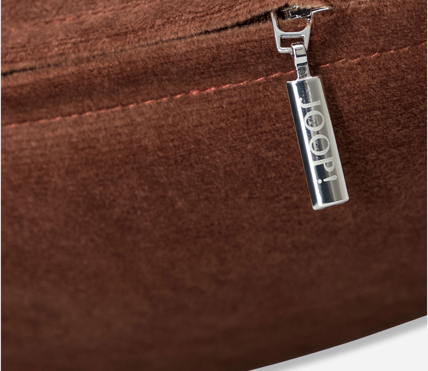 - Dekoracyjna poszewka na poduszkę Divided Karamell marki JOOP!. Jednobarwna, w kolorze ceglanym z nieregularnymi przeszyciami, wykonana z tkaniny welurowej. Zapinana na zamek błyskawiczny z eleganckim grawerem.