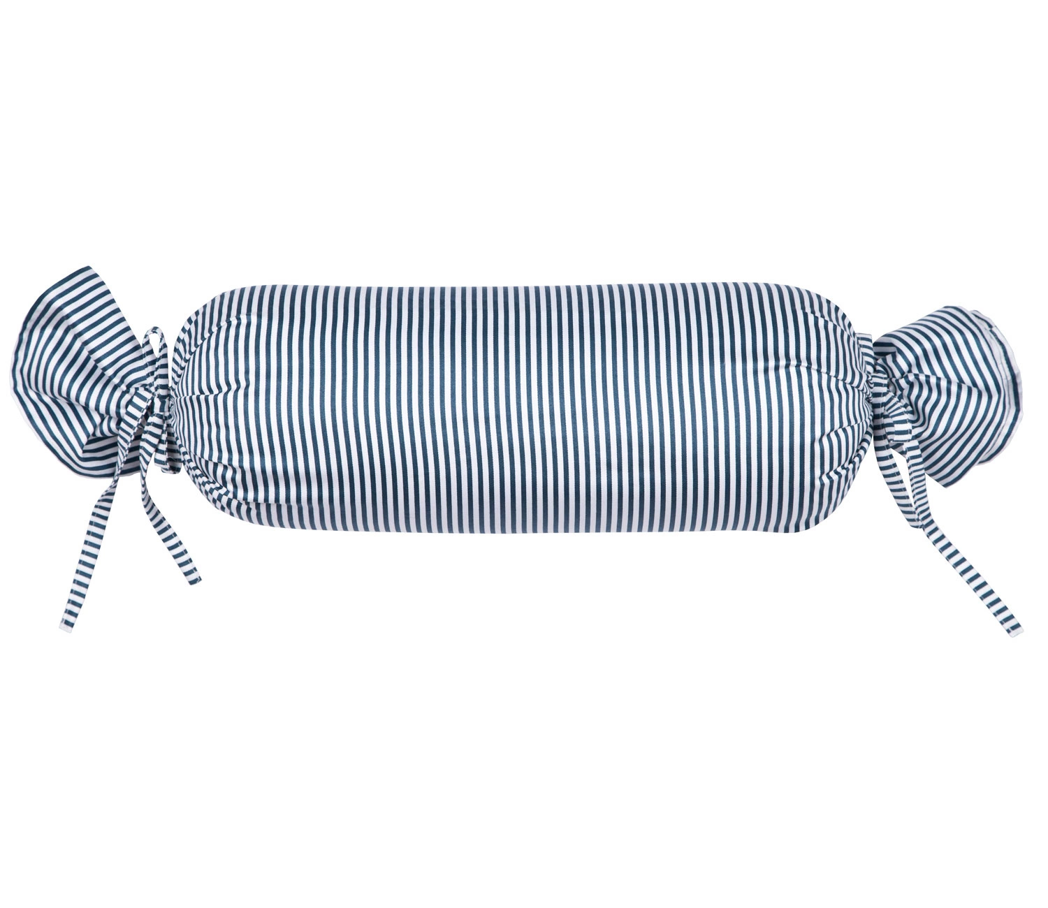 Poszewka na wałek Modern Classic 3910-72 marki Janine. Kolor morski w białe cienkie paseczki. Zawiązywana za pomocą troczków. Wykonana z satyny bawełnianej ze 100% bawełny mako. Dzięki procesowi merceryzacji poszewka zachwyca subtelnym połyskiem.