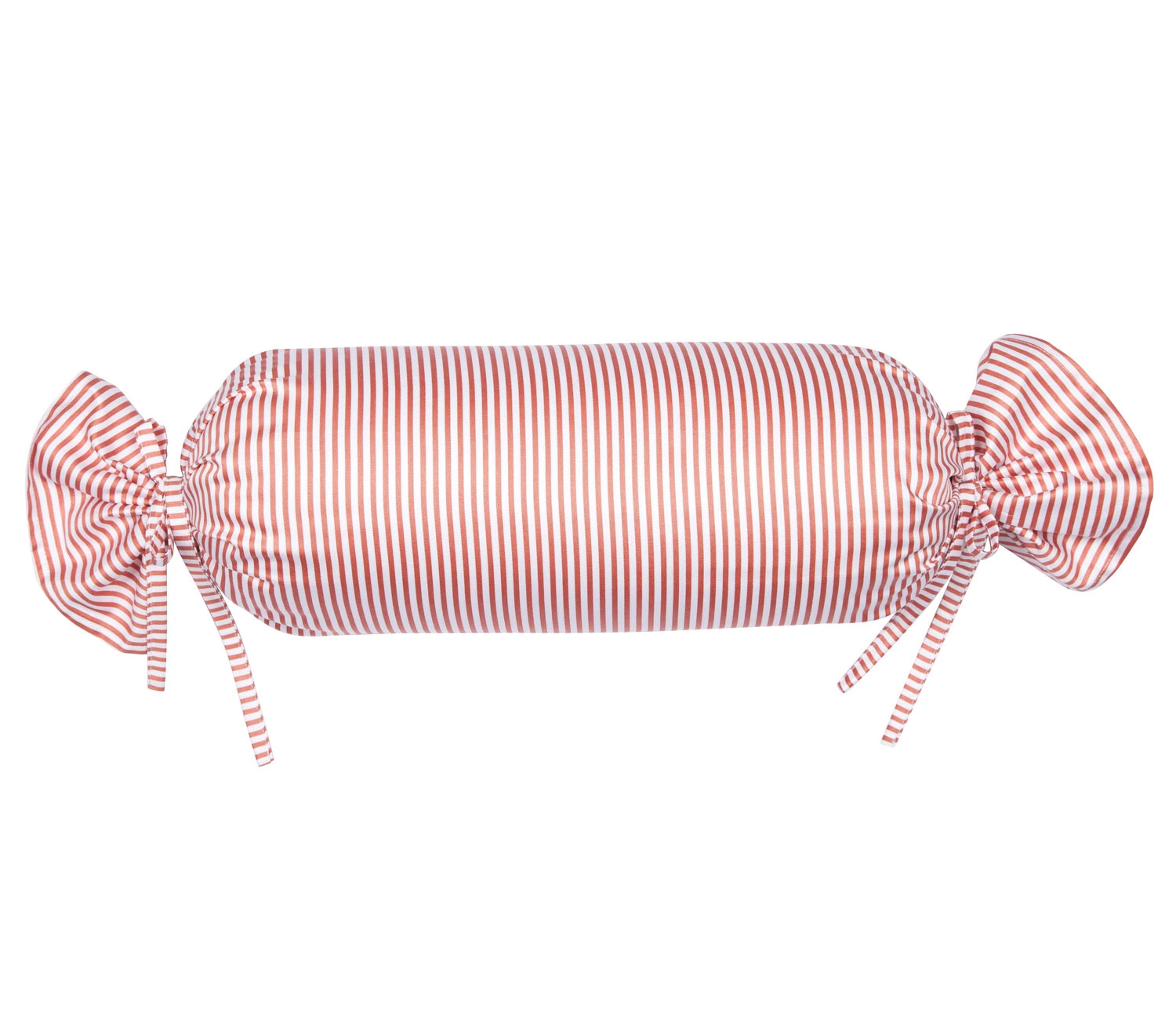 Poszewka na wałek Modern Classic 3910-44 marki Janine. Kolor koralowy w białe cienkie paseczki. Zawiązywana za pomocą troczków. Wykonana z satyny bawełnianej ze 100% bawełny mako. Dzięki procesowi merceryzacji poszewka zachwyca subtelnym połyskiem.