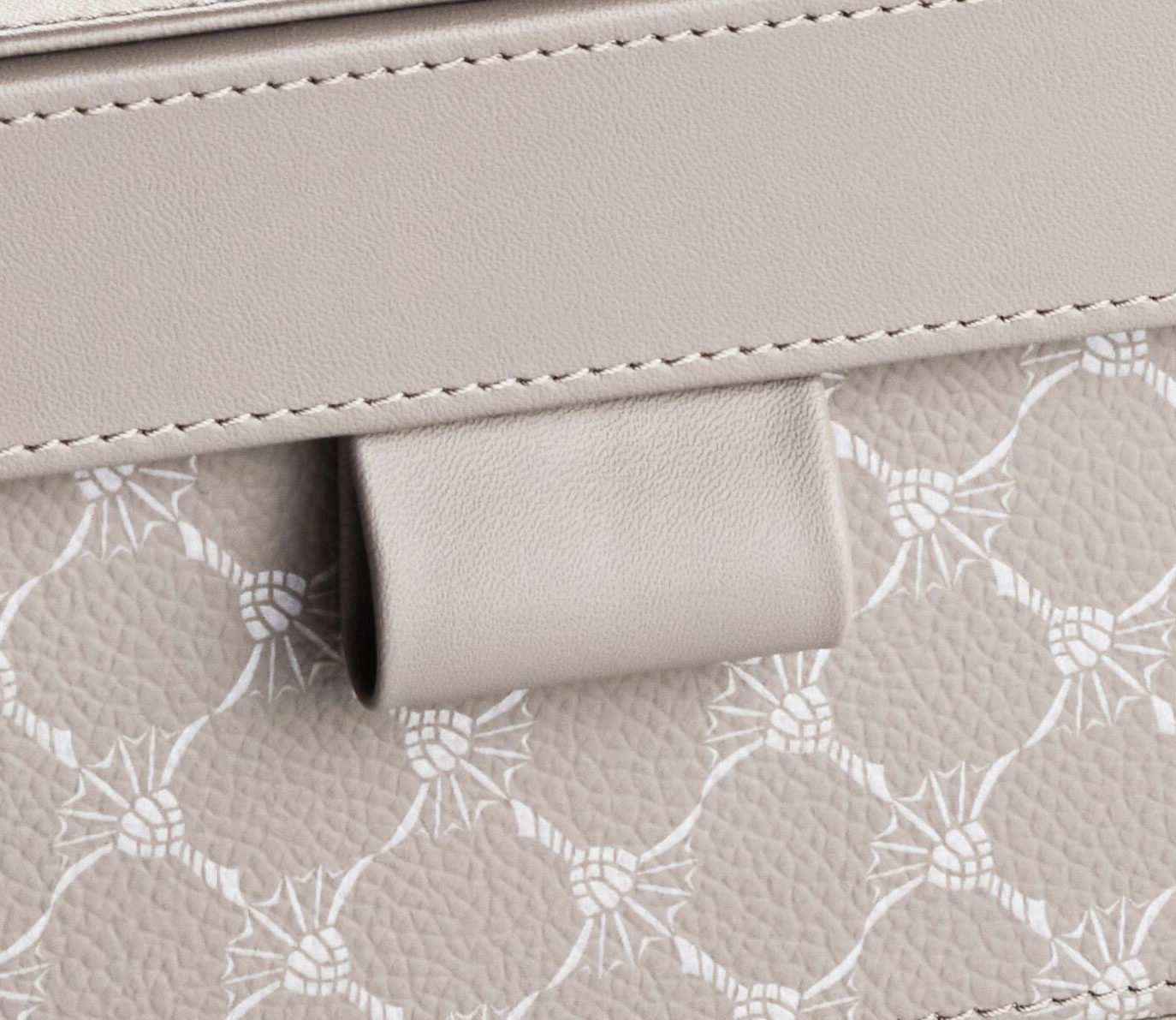 Pudełko z przykrywką Cornflower S Grey marki JOOP!. Idealny dodatek do salonu lub łazienki, pomocny przy przechowywaniu i organizacji przestrzeni. Wykonany z szaro-beżowej ekoskóry z białym motywem cornflower.