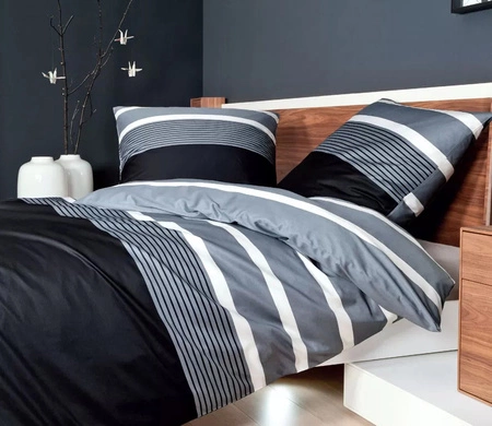 - Pościel JD 8468-08 marki Janine. Wzór w pasy o różnej szerokości w odcieniach szarości i czerni. Wykonana z satyny bawełnianej ze 100% bawełny mako. Dzięki merceryzacji pościel zachwyca subtelnym połyskiem. Zapinana na zamek błyskawiczny.