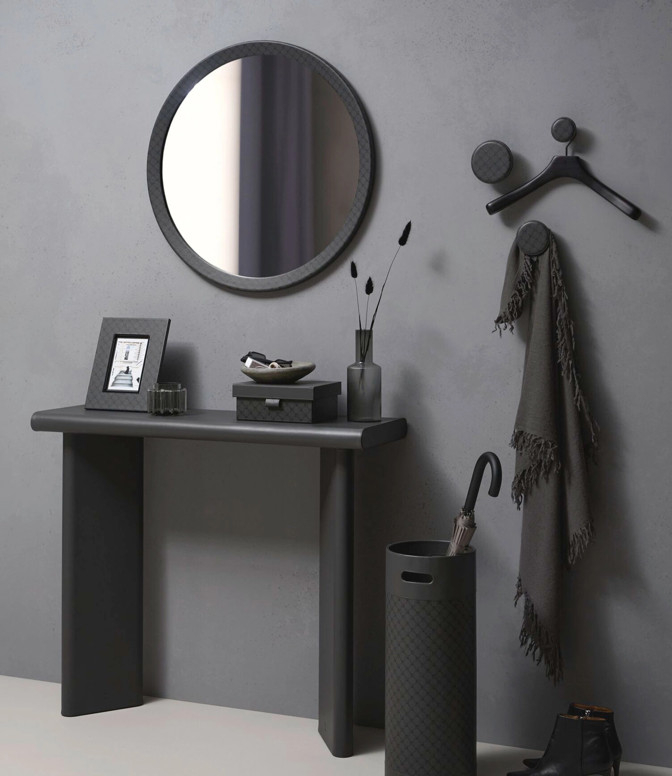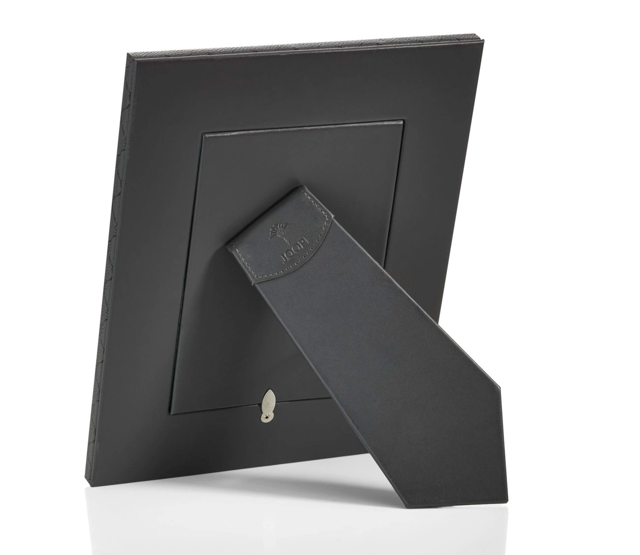 • Ramka na zdjęcia Cornflower marki JOOP!. Wykonana z trwałej ekoskóry w kolorze antracytowym. Ozdobiona motywem cornflower w kolorze czarnym. Format zdjęcia 13x18 cm. Możliwość ustawienia w poziomie lub w pionie.