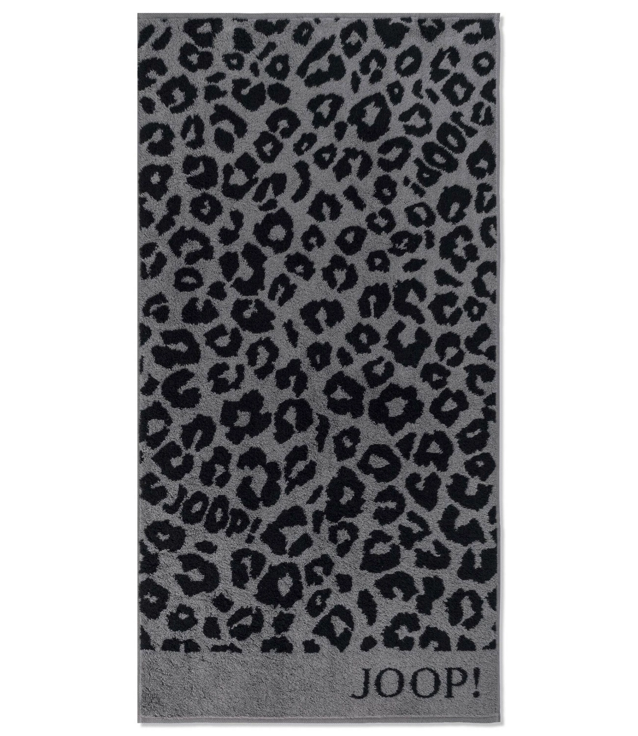 - Piękny ręcznik Leo Allover 1707-90 marki JOOP!. Modny wzór zwierzęcy w kolorach szaro-czarnym. Idealnie chłonny, miękki i puszysty. U dołu logo marki, u góry praktyczny haczyk do zawieszenia. Trwałość na lata.