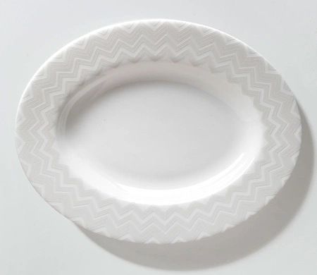 - Owalny półmisek 23 cm z kolekcji Zig Zag White marki Missoni. Energetyczny wzór w ponadczasowym, eleganckim, białym wydaniu. Wykonany z porcelany kostnej.
