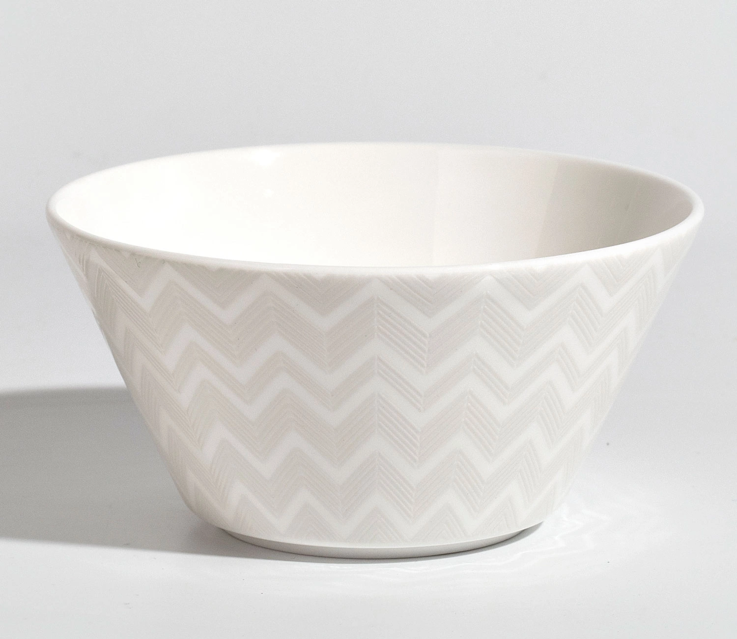- Zestaw sześciu miseczek do owoców, kolekcja Zig Zag White marki Missoni. Energetyczny wzór w ponadczasowym, eleganckim, białym wydaniu. Wykonane z porcelany kostnej.