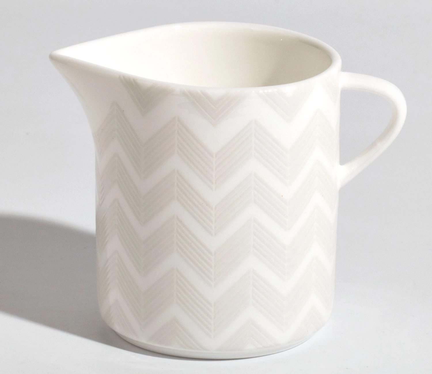 Dzbanuszek do mleka z kolekcji Zig Zag White marki Missoni. Energetyczny wzór w ponadczasowym, eleganckim, białym wydaniu. Wykonany najwyższej jakości kostnej.