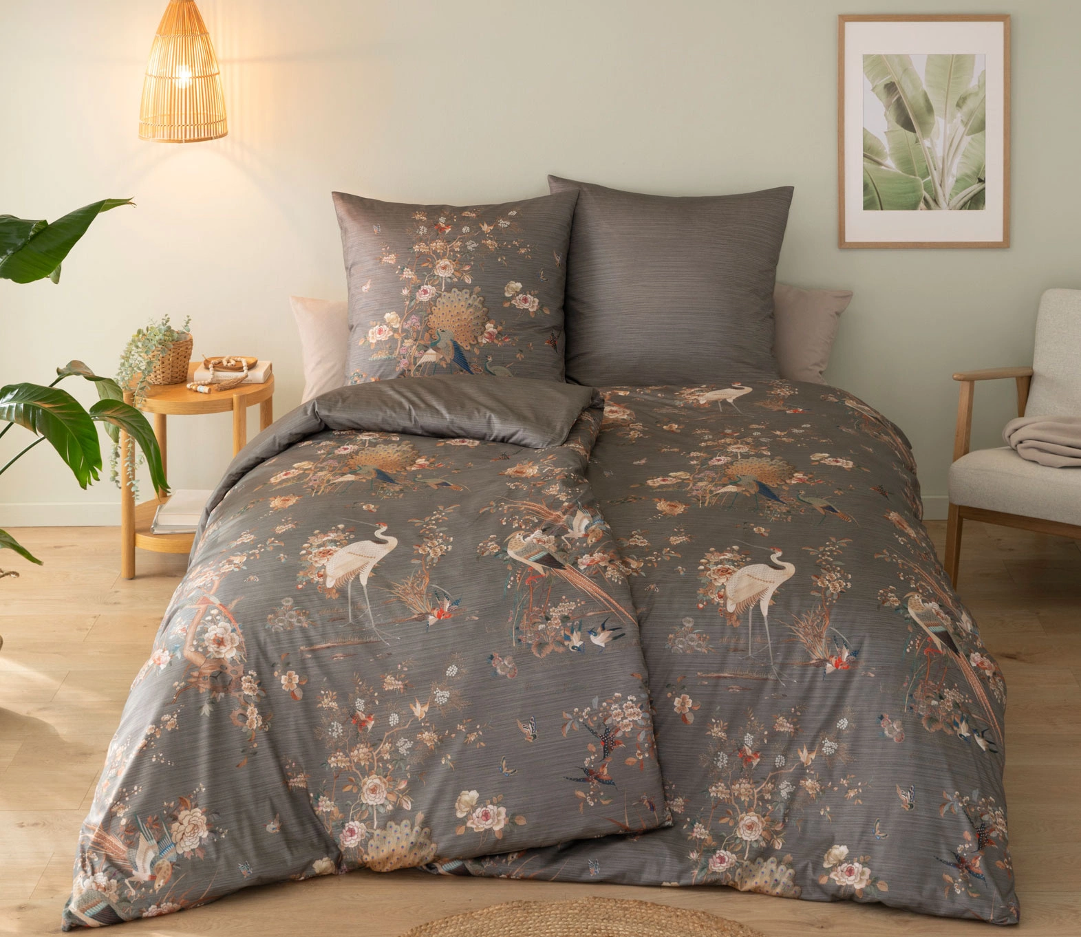 - Pościel Kim 6355-810 marki Estella. Oriantal e ptaki i kwiaty na melanżowym, szarym tle. Pościel Interlock - Jersey z ESTELLI wyprodukowana jest w 100% z czystej, czesanej egipskiej mako-bawełny Nm 100/1. Oznacza to, że 100 metrów nici waży tylko 1 gram.