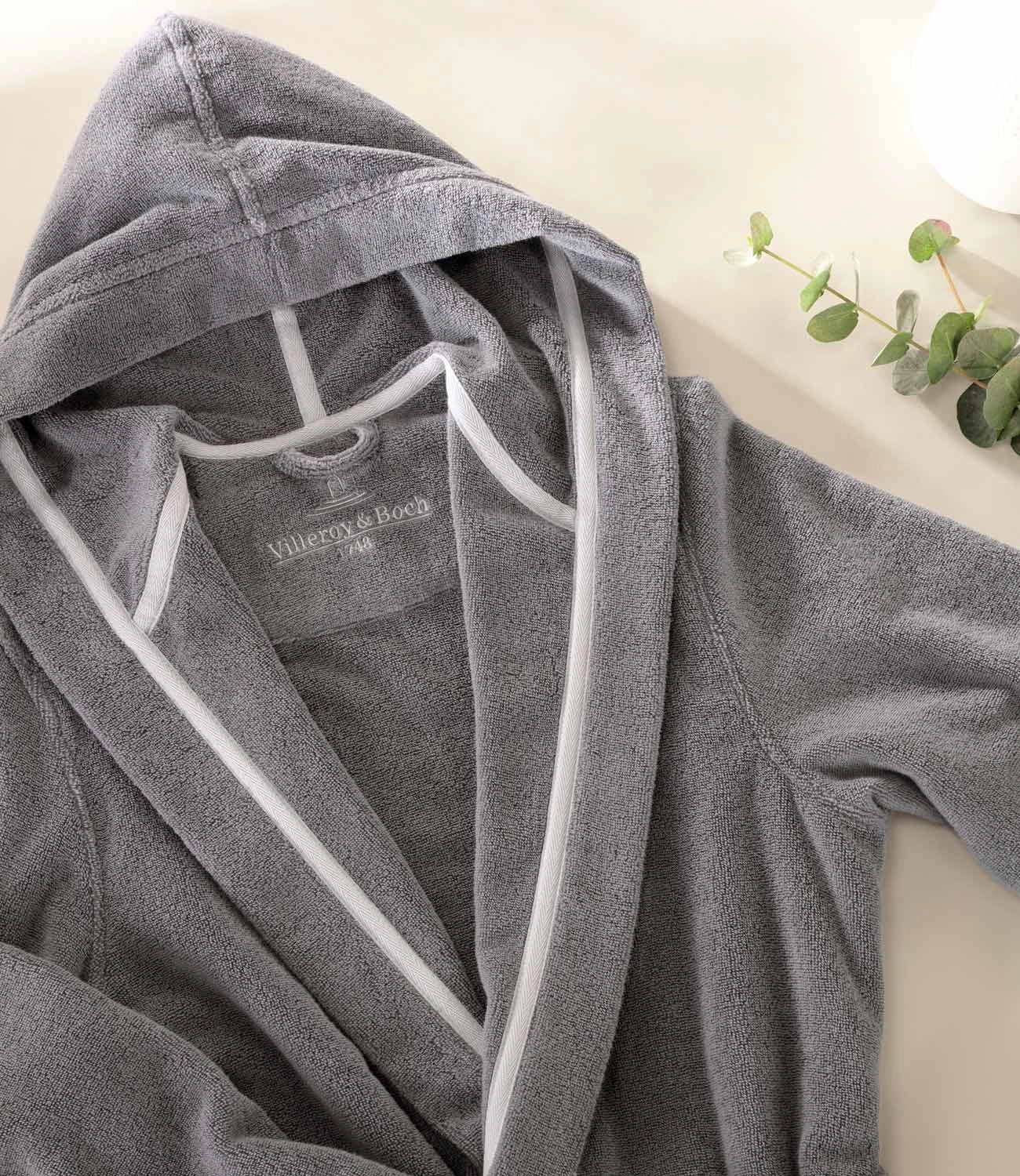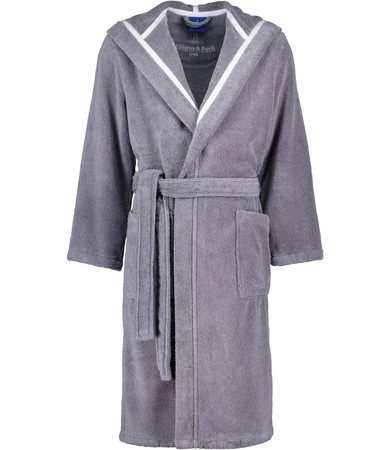 - Szlafrok męski z kapturem marki Villeroy & Boch. Wykonany z najwyższej jakości bawełny w eleganckim, szarym kolorze, wyjątkowo miękki i chłonny. Elegancki design, praktyczne kieszenie oraz pasek do wiązania w talii - esencja luksusu i funkcjonalności.