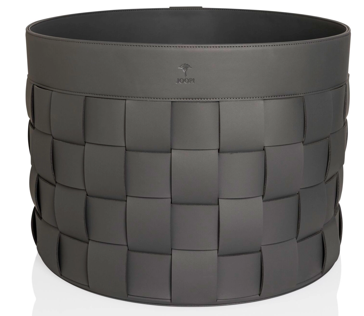 • Duży, pleciony kosz Cornflower L marki JOOP! w kolorze antracytowym. U góry wytłaczane logo. Wykonany z ekoskóry, z efektownymi przeszyciami. Idealny do łazienki lub salonu.