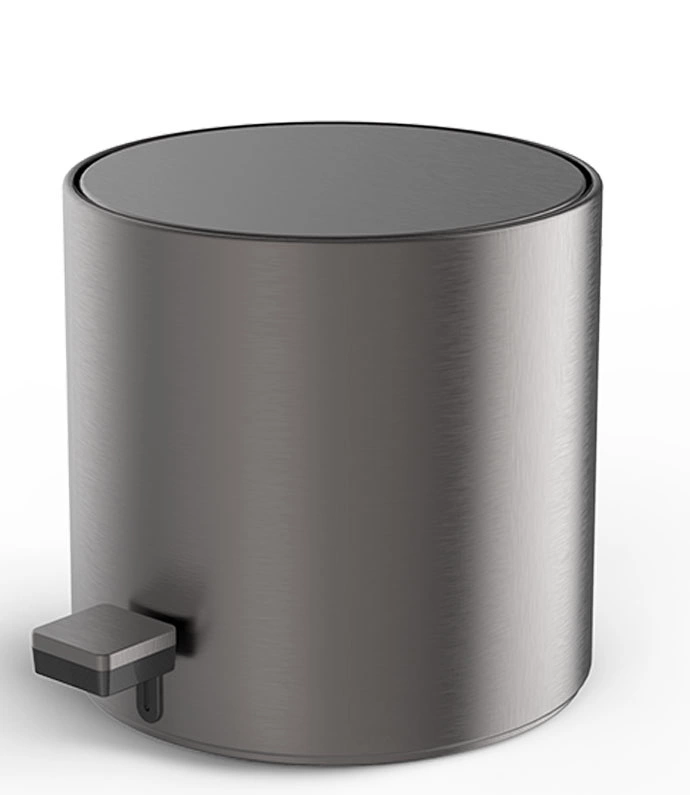 Okrągły kosz na śmieci TE 50 mini marki Decor Walther. Wykonany ze stali w koloze ciemnego metalu. Wygodne otwieranie za pomocą pedału. Funkcja cichego zamykania oraz wewnętrzny wkład o pojemności 3 L.