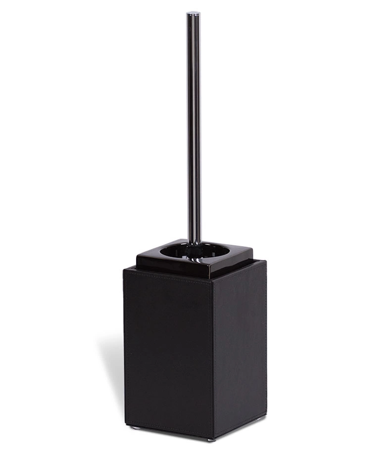- Wolnostojąca szczotka do WC z kolekcji BROWNIE Black. Porcelanowy, wyjmowany czarny wkład w etui z ekoskóry w kolorze czarnym. Drążek chrmowowany z higieniczną nakładką.
