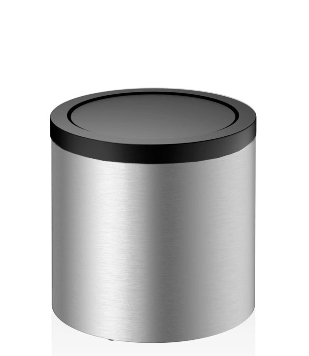 Niewielkich rozmiarów kosz na papier lub gościnne ręczniczki DW 125 marki Decor Walther. Okrągła podstawa oraz obracalna pokrywa. Wykonany z wysokiej jakości stali nierdzewnej matowej z czarną pokrywą.