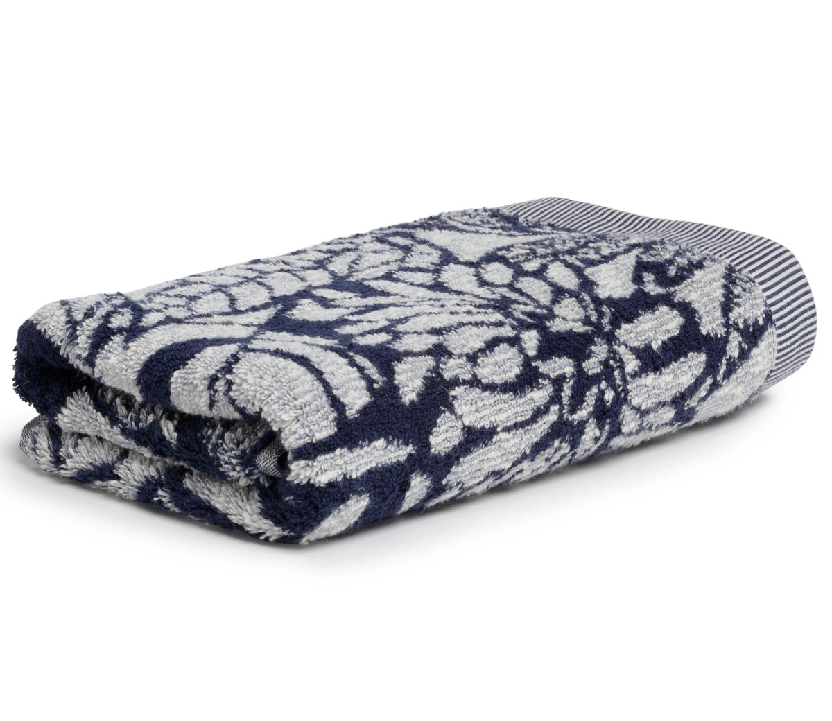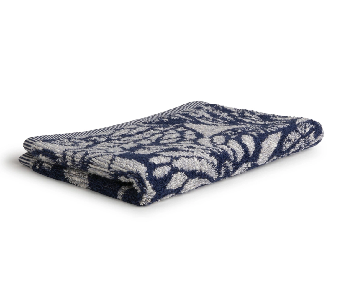 Ręcznik Brooklyn Botanic marki Möve w kolorze granatowo-beżowym z kwiatowym motywem, to doskonałe połączenie tradycji i nowoczesności. Wykonany z ekskluzywnej tkaniny bouclé (85% bawełna, 10% wiskoza, 5% len), łączy klasyczne wzory inspirowane erą Dandy’ego z nowoczesnym materiałem. Jego wysoka jakość i precyzyjna obróbka gwarantują nie tylko estetyczny wygląd, ale i przyjemność użytkowania. Miękki i chłonny, doskonale sprawdzi się po kąpieli, zapewniając komfort i elegancję. Dzięki różnorodnym wzorom, ręcznik będzie wyróżniającym się akcentem w każdej łazience.