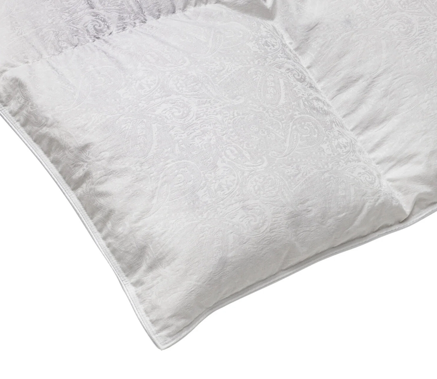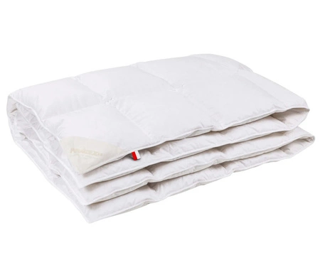 Luksusowa kołdra White Flower wypełniona 100% polskim puchem gęsim. Kołdra pokryta delikatną, żakardową tkaniną bawełnianą w białym kolorze z wzorem kwiatów podkreślającym luksusowy charakter produktu. Nadaje się do prania. Kołdra posiada różnej wielkości kasety z dostosowanymi do nich masami puchu tak, aby zapewnić optymalną temperaturę w czasie snu. Wewnątrz kołdry wszyte są taśmy tworzące ścianki wokół każdej kratki, dzięki czemu powstają kasetowe komory. Po wypełnieniu, puch nie ma możliwości przemieszczania się między komorami. W miejscach przeszycia kołdra nie posiada tzw. "zimnych stref". Kołdra ta gwarantuje bardzo dobrą izolację cieplną, jest miękka, delikatna w dotyku i zapewnia bardzo wysoki komfort snu. Posiada certyfikat NOMITE - dla osób uczulonych na kurz i roztocza kurzu domowego.