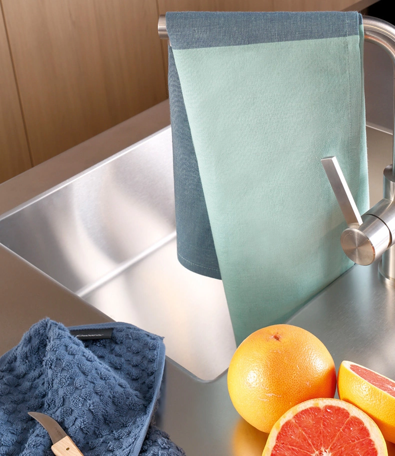 - Ściereczka kuchenna Duo 535 Nachtblau/Mint. Łączy modne kolory z doskonałą jakością (52% len, 48% bawełna). Zapewnia dużą chłonność i szybkie suszenie, idealna do kuchni. Możliwość prania w 60°C.