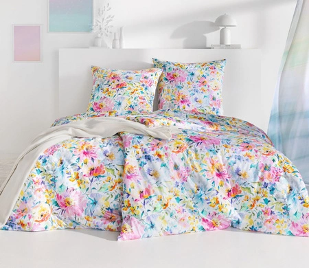 - Pościel satynowa Alanis 4826-985 marki Estella. Energetyczny wzór w wielokolorowe kwiaty. Wyprodukowana jest w 100% z czystej, czesanej mako-bawełny. Satyna z firmy Estella jest niezwykle przyjemna i przyjazna dla skóry.