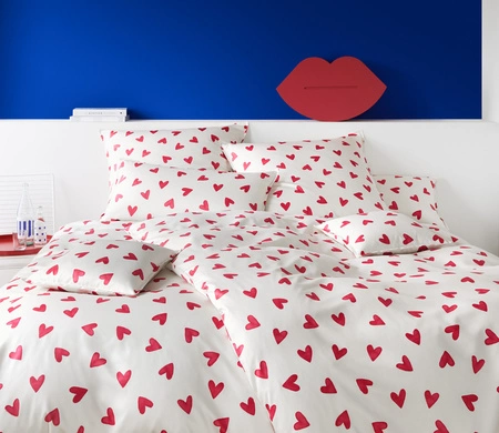 - Pościel Cherie marki elegante wykonana z najwyższej jakości satyny bawełnianej, zapewniającej komfort snu przez cały rok. Kremowe tło z delikatnymi, czerwonymi serduszkami. Chłodny, gładki w dotyku i przewiewny materiał. Poduszka z delikatna listwą.