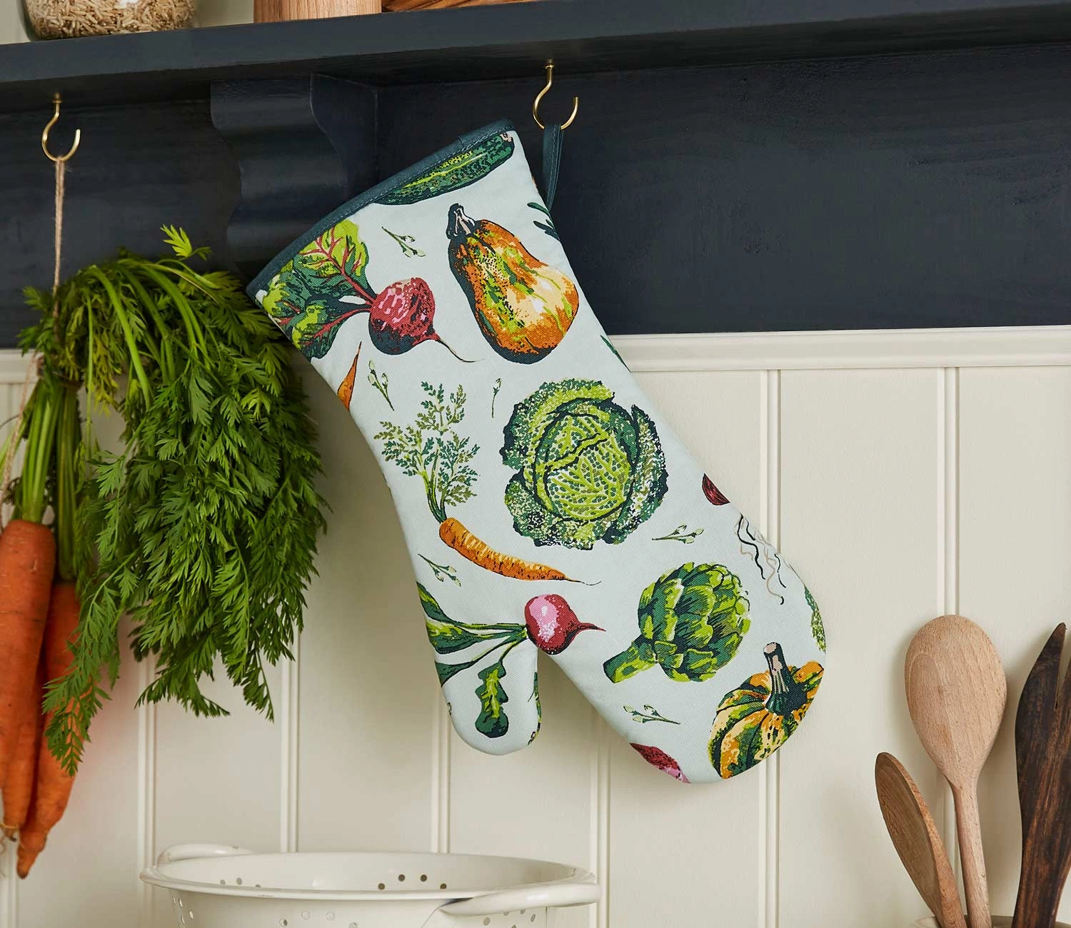 Rękawica kuchenna Vegetable Medley brytyjskiej marki Ulster Weavers to elegancki i funkcjonalny dodatek do każdej kuchni, inspirowany naturalnym stylem retro i ilustracjami botanicznymi vintage. Wzór przedstawia warzywa w ciepłej palecie barw, przywołując klimat ogrodniczej pasji i natury, nadając kuchni przytulny, rustykalny charakter.