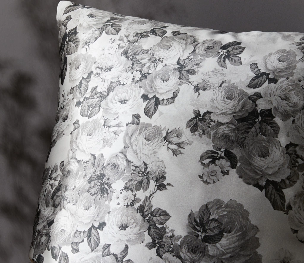 - Komplet pościeli Fleuresse Black Premium 534420-1 wykonany z luksusowej satyny szwajcarskiej. Pościel dwustronna w kwiatowy druk cyfrowy w kolorystyce czarno-szarej - tło białe. Druga strona gładka. Wyjątkowa jakość tkaniny zapewnia subtelny połysk.